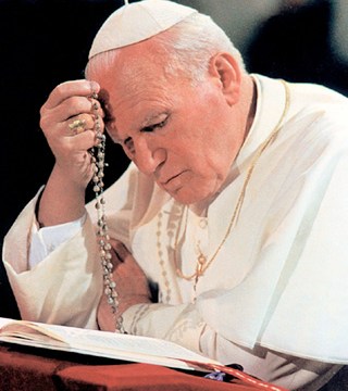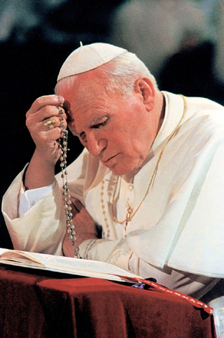 Pope John Paul II prays the rosary at Notre Dame du Chant d’Oiseau Church in Brussels, Belgium, in June 1995. Throughout his pontificate the Holy Father has shown a devotion to Mary. He has called the rosary his “favorite prayer.” (CNS photo from Catholic Press Photo) (Aug. 27, 2003) See POPE25-MARY Aug. 28, 2003.