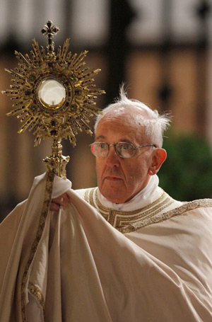 This Sunday morning was very blessed and special. It was a great day to be Catholic! As I walked to my SUV, I said to myself, “Man, I love being Catholic.” Only in the Catholic and Orthodox Church’s do you see the 2000 – year old Traditions in such magnificent splendor and awe. See the video below of Pope Francis and the Procession of Corpus Christi in Rome.