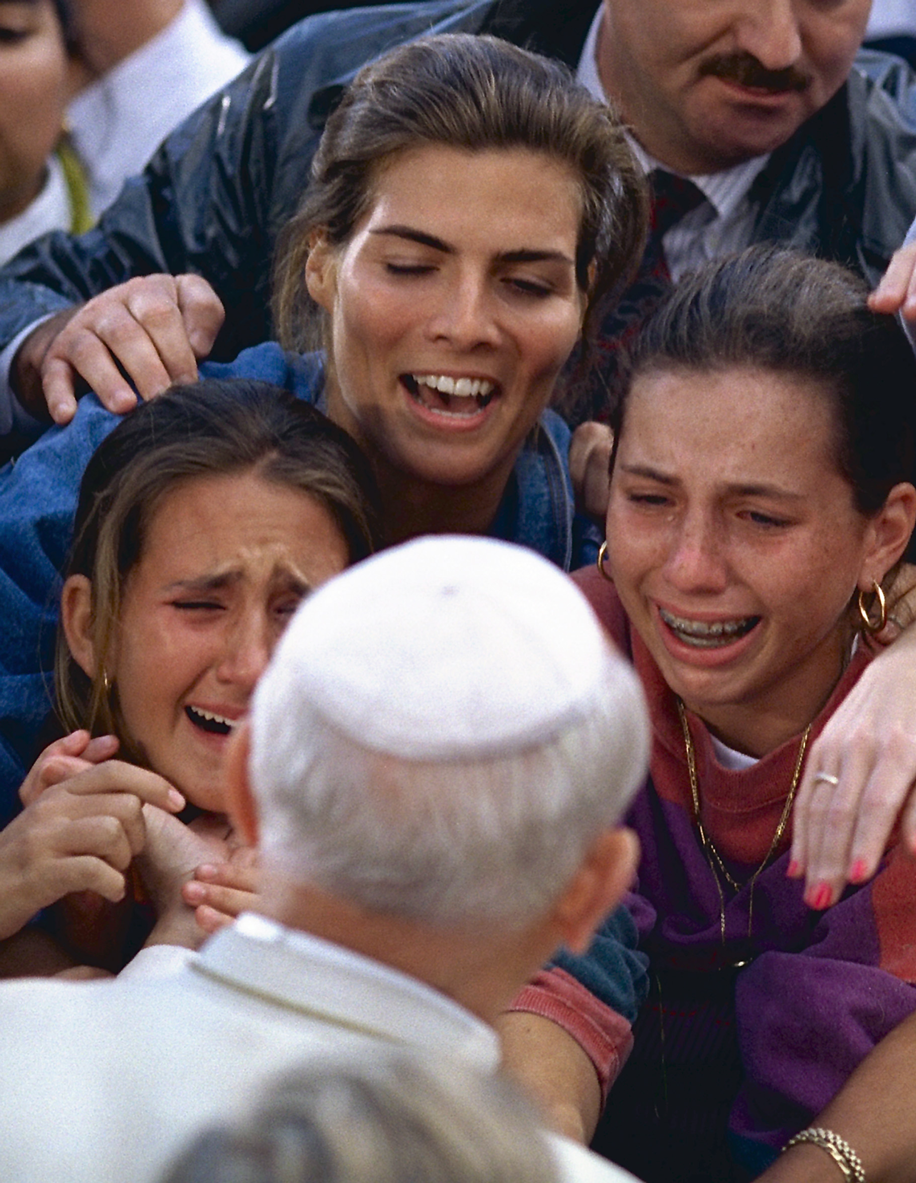 YOUNG WOMEN GREET POPE JOHN PAUL II AT WORLD YOUTH DAY IN 1993