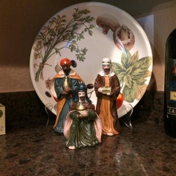 The Magi in my kitchen. A little sip of the vino might help them sleep better that week.