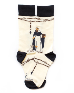Today I am writing about this product because Sock Religious recently released Saint Dominic Socks. Saint Dominic is one of the great medieval saints of the Catholic Church. He is the founder of the order that bears his name – The Dominicans. Known to so many as the Order of Preachers (O.P.), the Dominicans have established themselves over the centuries as preachers and educators. I have written countless times on the Dominicans here on this blog, most especially the Dominican Sisters of Mary from Ann Arbor, Michigan. St. Dominic is also associated with the Most Holy Rosary of the Blessed Virgin Mary. To learn more about him, I would encourage you to read this link.