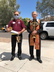 Our sister parish here in Gilbert, Saint Anne Catholic Church, started bringing the Blessed Sacrament to their parishioners last week on Palm Sunday, and the last I read and saw on Facebook and Instagram, they are continuing to do so. I remember seeing this last week on Facebook from friends who attend the parish. My wife and I thought it was pretty awesome. When I heard that our parish was going to do it, I jumped at the chance to have Jesus come to our home.