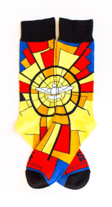 The latest sock from Sock Religious is the Holy Spirit Socks. Inspired by the alabaster window in the magnificent Saint Peter’s Basilica in Rome, these socks will have you saying, “Come Holy Spirit.”